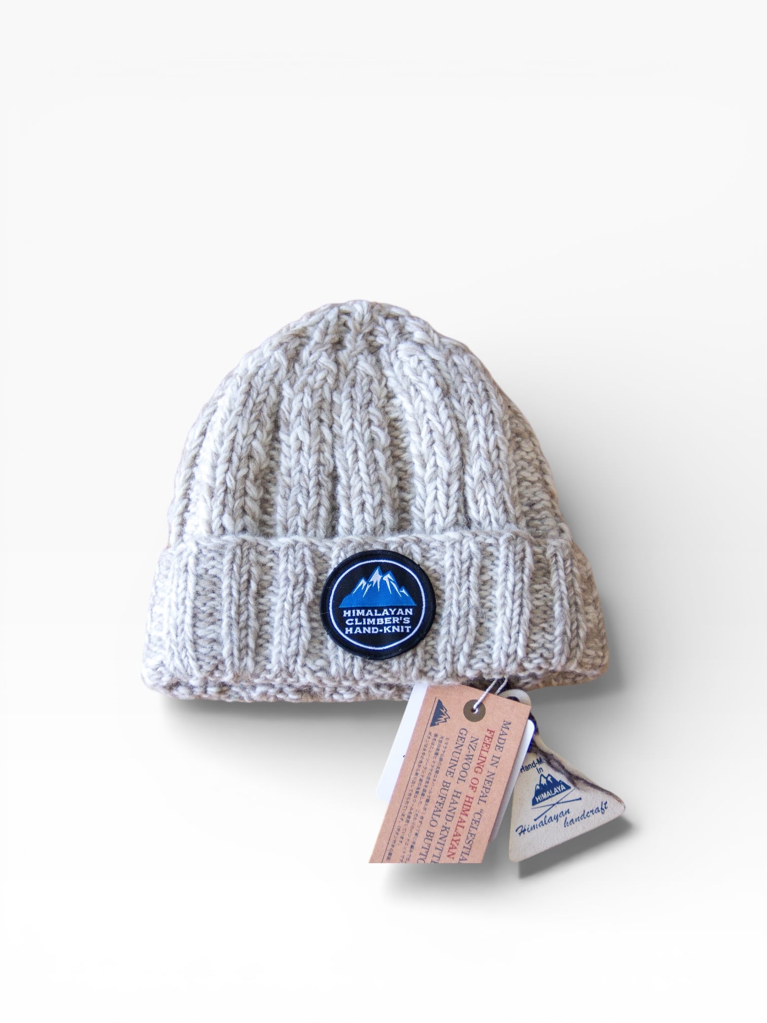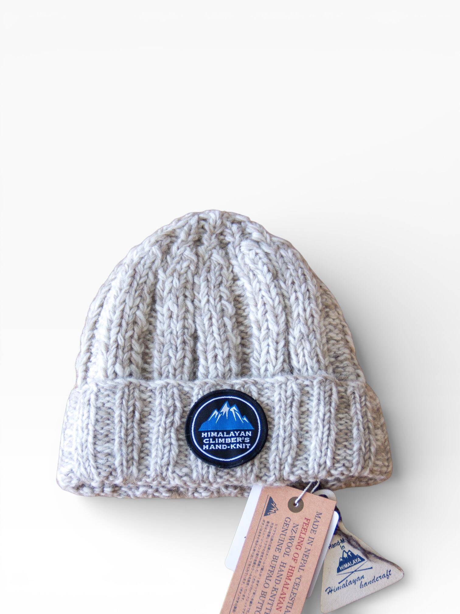 ヒマラヤ登山の玄関口として知られる街で育まれた手編み文化を背景に、テンションをかけてしっかり編み込むことで、伸び縮みの不安を抑えた仕立てが特徴です。