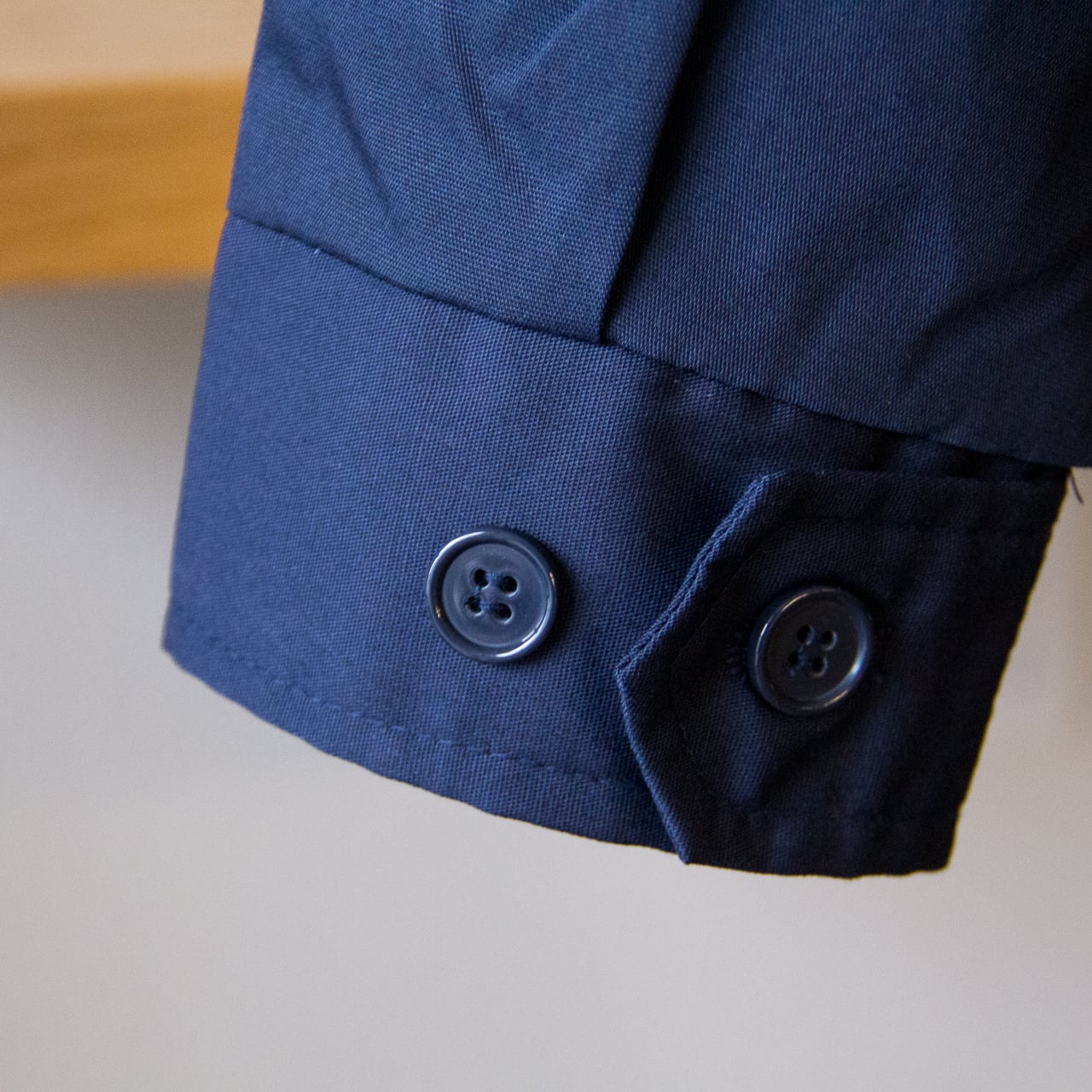 ポリエステルの耐久性と綿の快適性を適度に兼ね備え、型崩れが少ないのが魅力のT/Cウェザーを表地に使用。裏地付き。