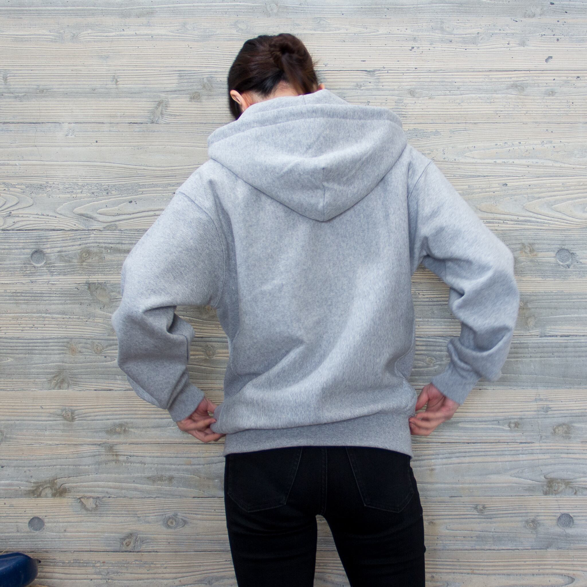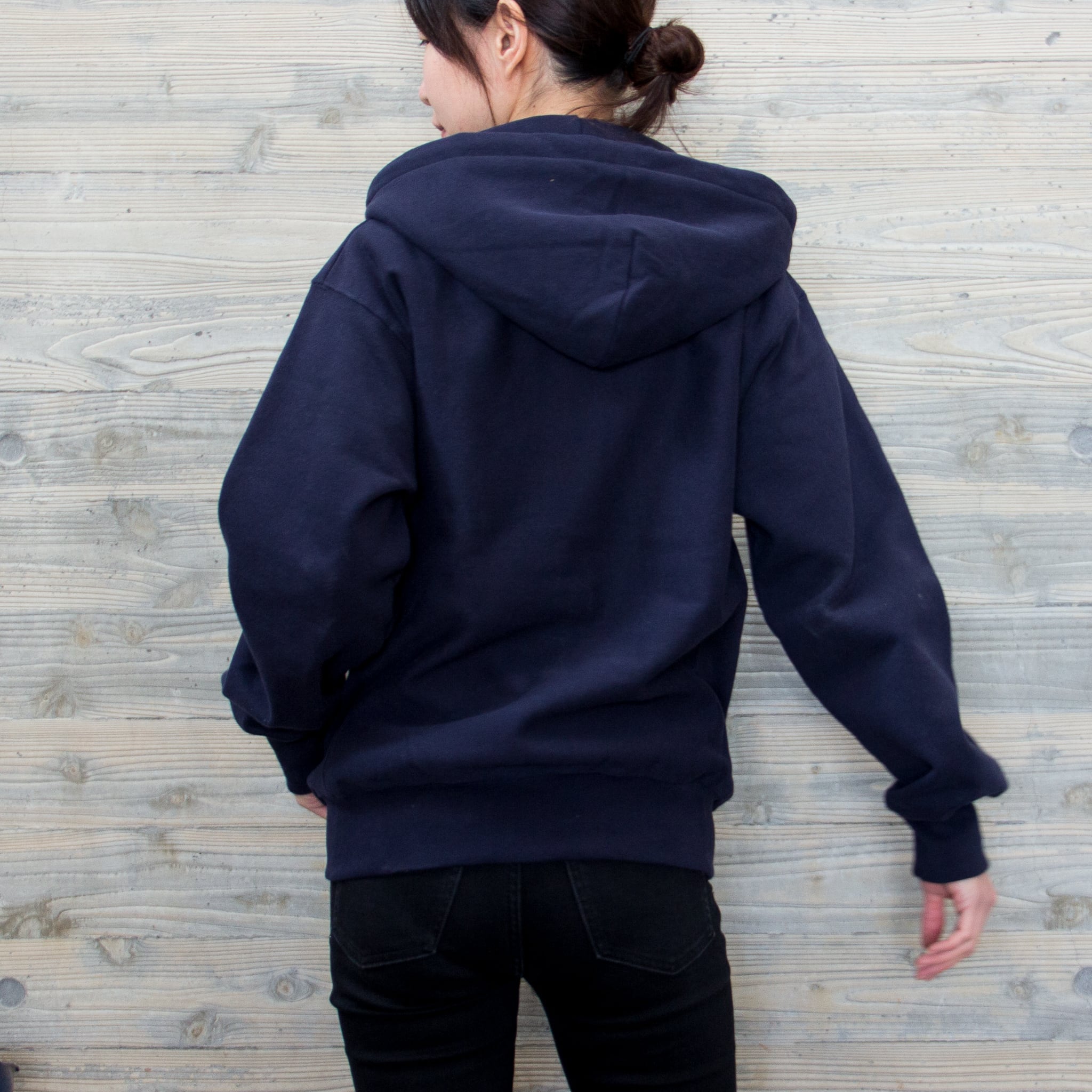 大きめで綺麗な形のフードにこだわった、ダブルスライダーで着まわしやすいZIPパーカ。