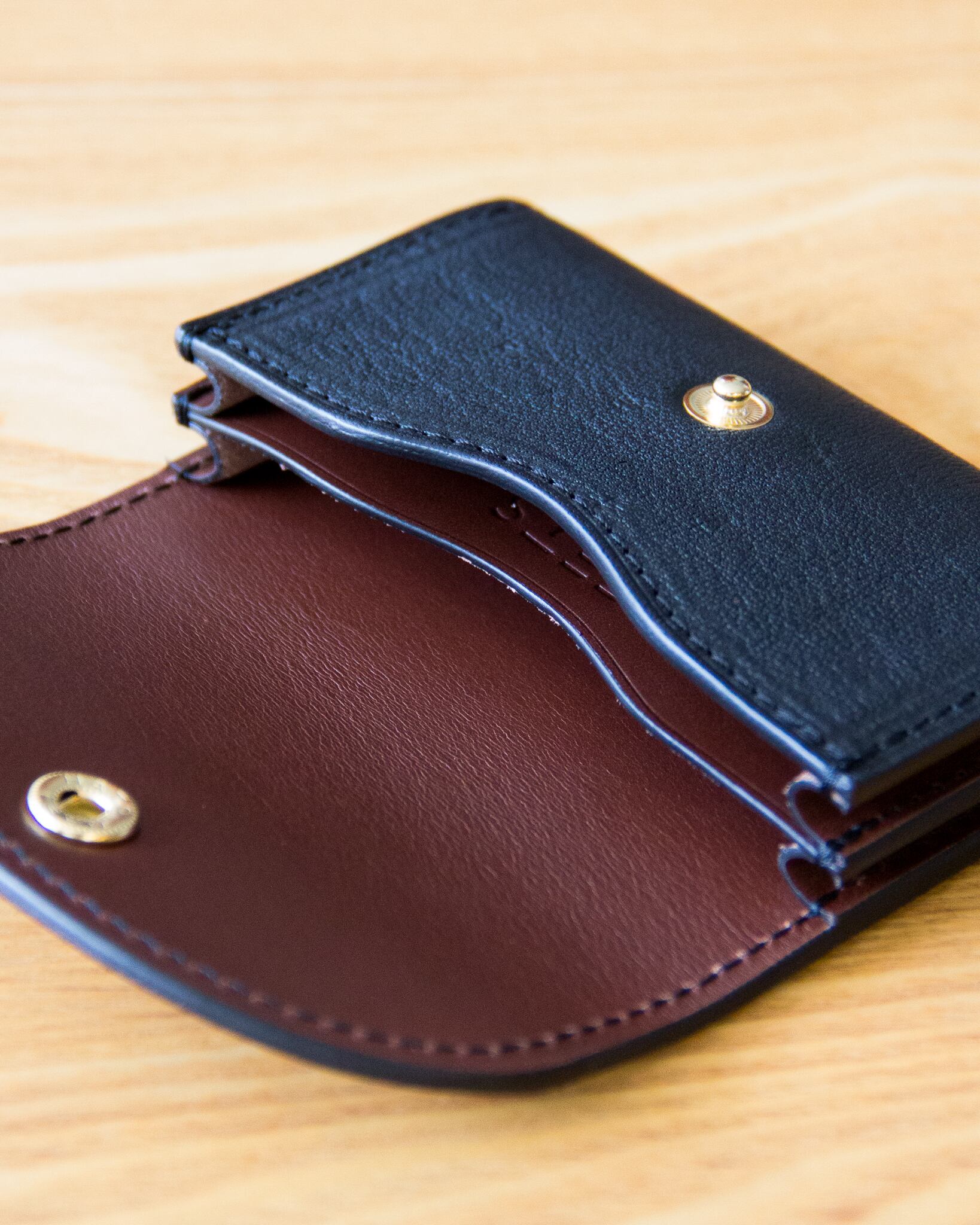 エゾシカレザーとイタリアンレザーを組み合わせた、シンプルな2ポケットの名刺入れ。